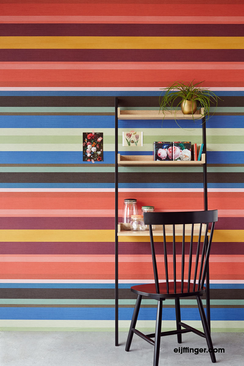 Tapet cu dungi colorate, decorare perete hol, living sau bucatarie. Colectia Masterpiece by Eijffinger – https://www.verdeco.ro/tapet-masterpiece-eijffinger